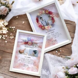 も付いているので壁に飾ることもできます。花材は仕入れの状況により異なるものを使用する場合があります。繊細な花材を使用しているため配送時に多少欠けて経年により花材の色が徐々に変わっていきます。